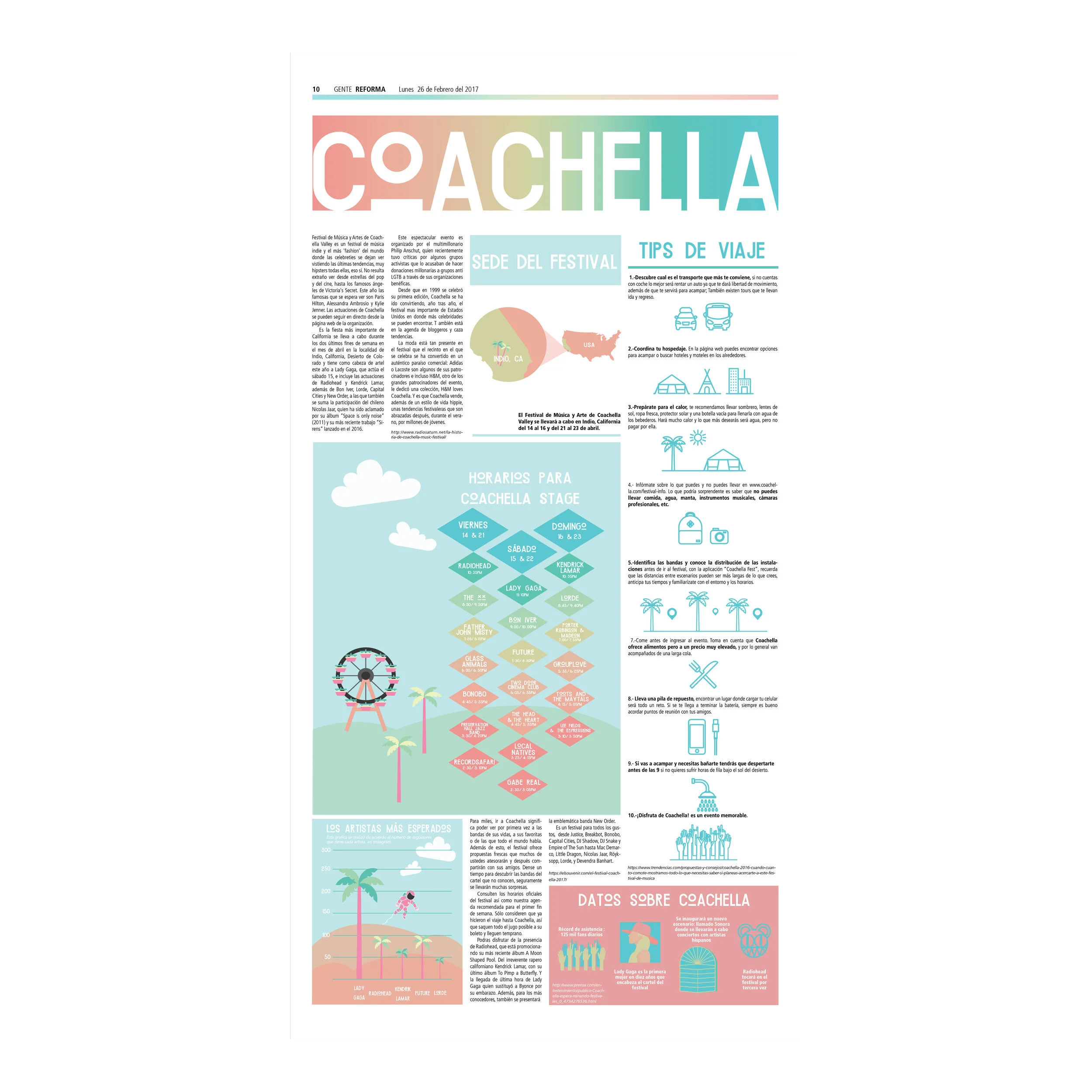 PeriódicoDiseño editorial para periódico con el tema de Coachella.· Junio 2017 · Diapositiva 1 Diapositiva 1 (esta diapositiva)